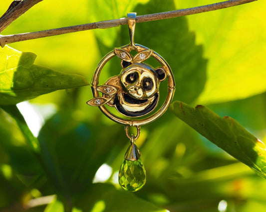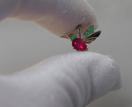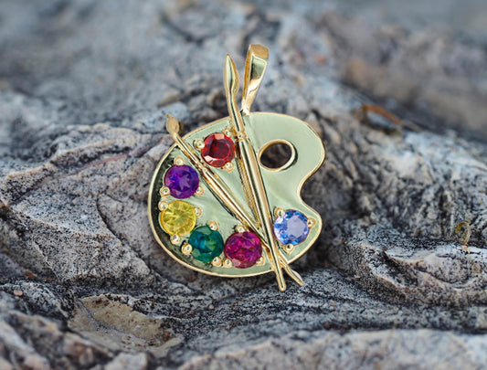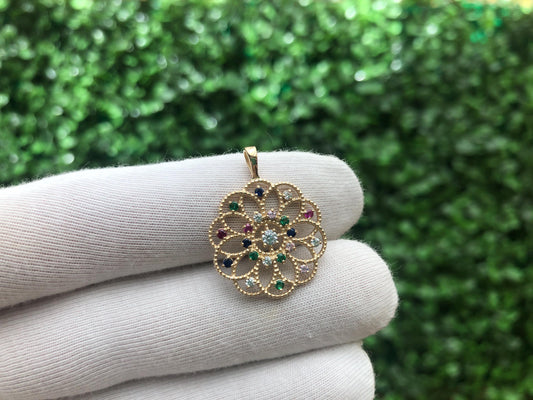 14K Gold Zulfikar sword pendant with emerald, diamonds