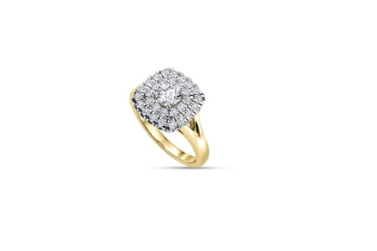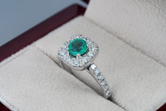 Diamond Halo emerald 14k gold ring