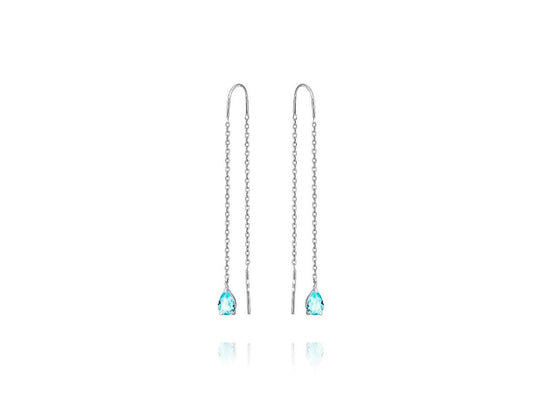 Blue Topaz Threader Earrings in 14k gold