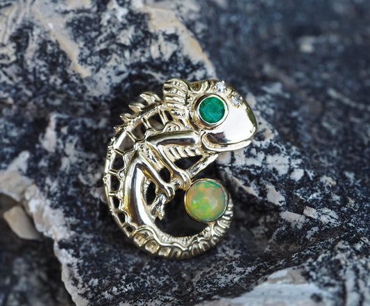 Chameleon pendant with opal in 14k gold