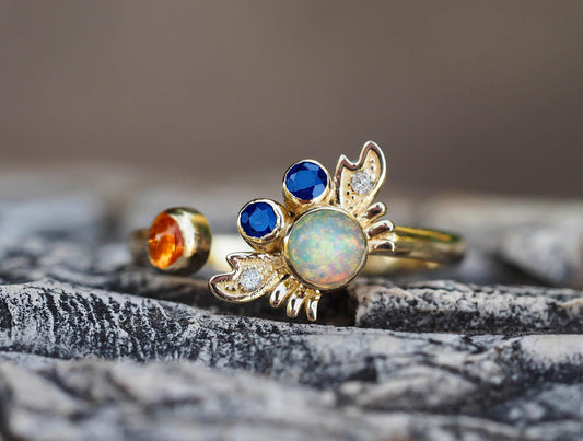 Crab gold ring with opal in 14k gold