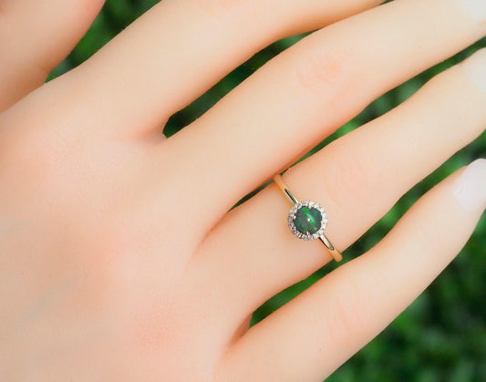 Diamond Halo Opal Ring in 14k Gold
