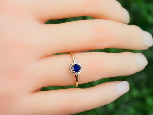 Diamonds Halo Sapphire Ring in 14 Karat Gold